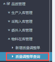 4.提交后,回到左侧功能菜单里找到“质量调整单查询”并进入