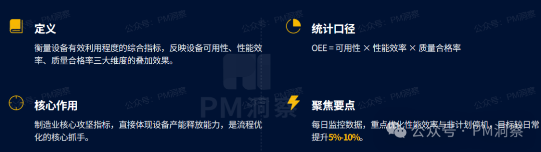 正确理解:OEE是可用性×性能效率×质量合格率的综合指标,三个维度缺一不可