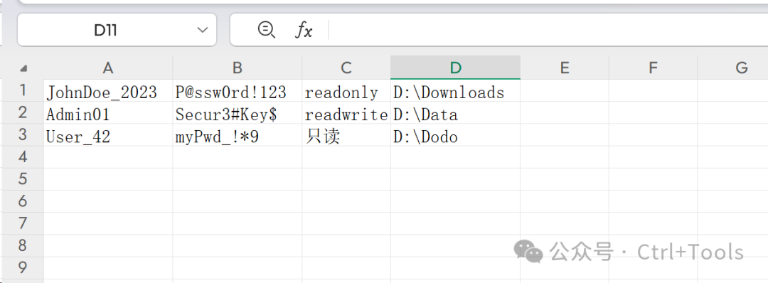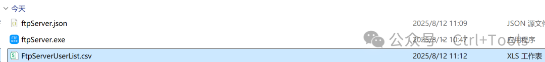 2.进阶使用开放多人使用 在主程序所在目录新建文件 FtpServerUserList.csv