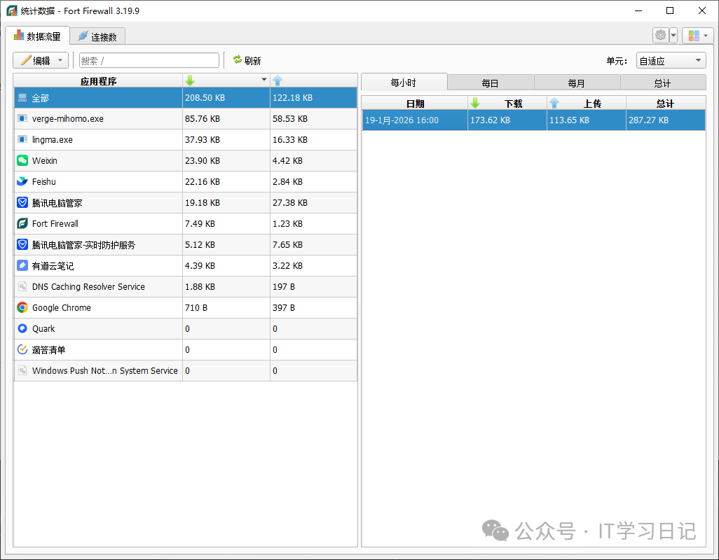- Windows系统原生工具无法查看具体某个软件用了多少流量。Fort工具内置了流量统计与历史报告功能,可以查看日、周、月流量排名,让用户对网络使用情况一目了然
