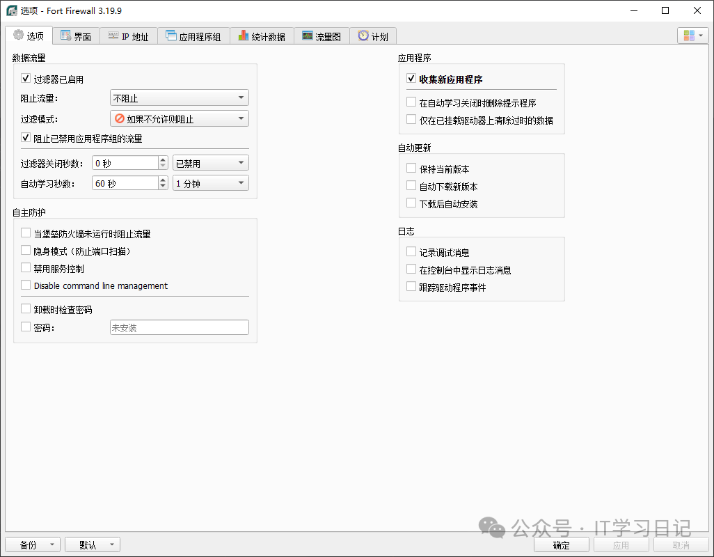 - Fort工具提供了自动学习模式(Auto-Learn),在此模式下,Fort会自动监控所有连接但不进行实际拦截,方便用户观察哪些程序需要联网,避免误杀系统关键进程