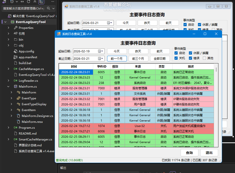 [点晴永久免费OA]Windows系统日志查询工具v1.5