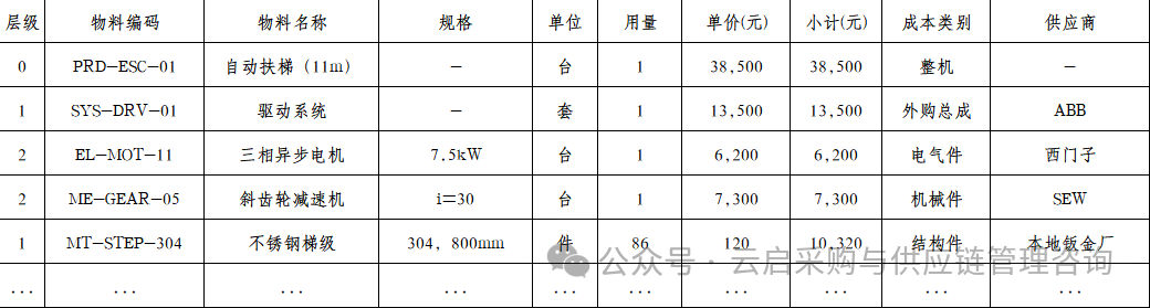 导读建立一个产品成本BOM(BillofMaterials,物料清单)是实现精细化成本管理、定价决策和供应链优化的核心工具。教你如何快速建立一个采购BOMStep1:获取准确的产品结构1.来源:工程图纸、PLM系统、样机拆解。2.输出:多层级BOM树(父项→子项→孙项)。Step2:标准化物料编码与命名1.建立物料主数...