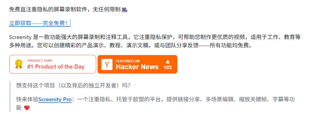 Screenity是一款开源的屏幕录制工具,Chrome插件即可使用。支持全屏/区域录制、摄像头画中画、麦克风旁白、实时标注(画笔、箭头、文字)、高亮鼠标点击。录制后可直接导出MP4或GIF,做教程演示神器。下载地址:https://github.com/alyssaxuu/screenity