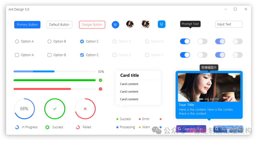 1-进度条2-按钮在项目中使用的话,通过NuGet搜索AntdUI安装即可。然后将窗体修改为继承自AntdUI.Window。最后拖几个控件到窗体上,运行一下就能看到效果了。