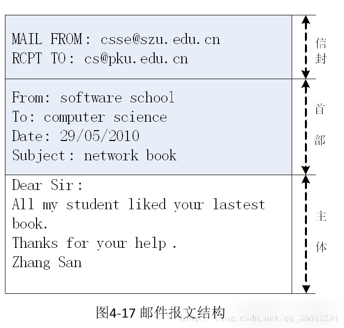 (这里要注意的是报文的信封部分是不会体现在邮件内容里面的。smtp协议是能够直接通过telnet工具执行命令的)