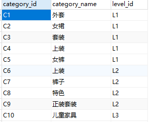 这里通过表data_learning.product_order(商品销量表)、data_learning.product(商品信息表)、data_learning.product_category(商品二级分类信息表)进行举例,data_learning是之前创建的数据库。数据表示例数据分别如下: