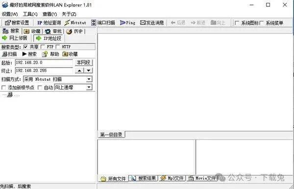 这货搜局域网资源又快又方便:多线程扫所有工作组、主机、打印机、共享文件,可按网上邻居、工作组或IP段自动搜mp3、电影,也支持自定义搜索。内置nbtstat,扫IP段拿主机名、工作组名、用户名、MAC地址速度极快,扫描结果还能存成文本或Excel。