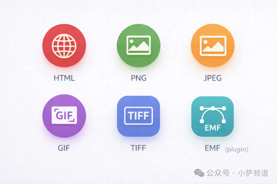 开源版默认支持导出的格式:HTML、BMP、PNG、JPEG、GIF、TIFF、EMF。