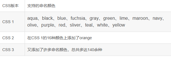 诸如red这样已经定义的合法的命名颜色关键字很少。CSS1仅包含HTML4.0中定义和支持的16种基本颜色,CSS2在这16种颜色的基础上添加了orange ,CSS3又添加了很多颜色名,算上先前的17种颜色,命名颜色约有150种。