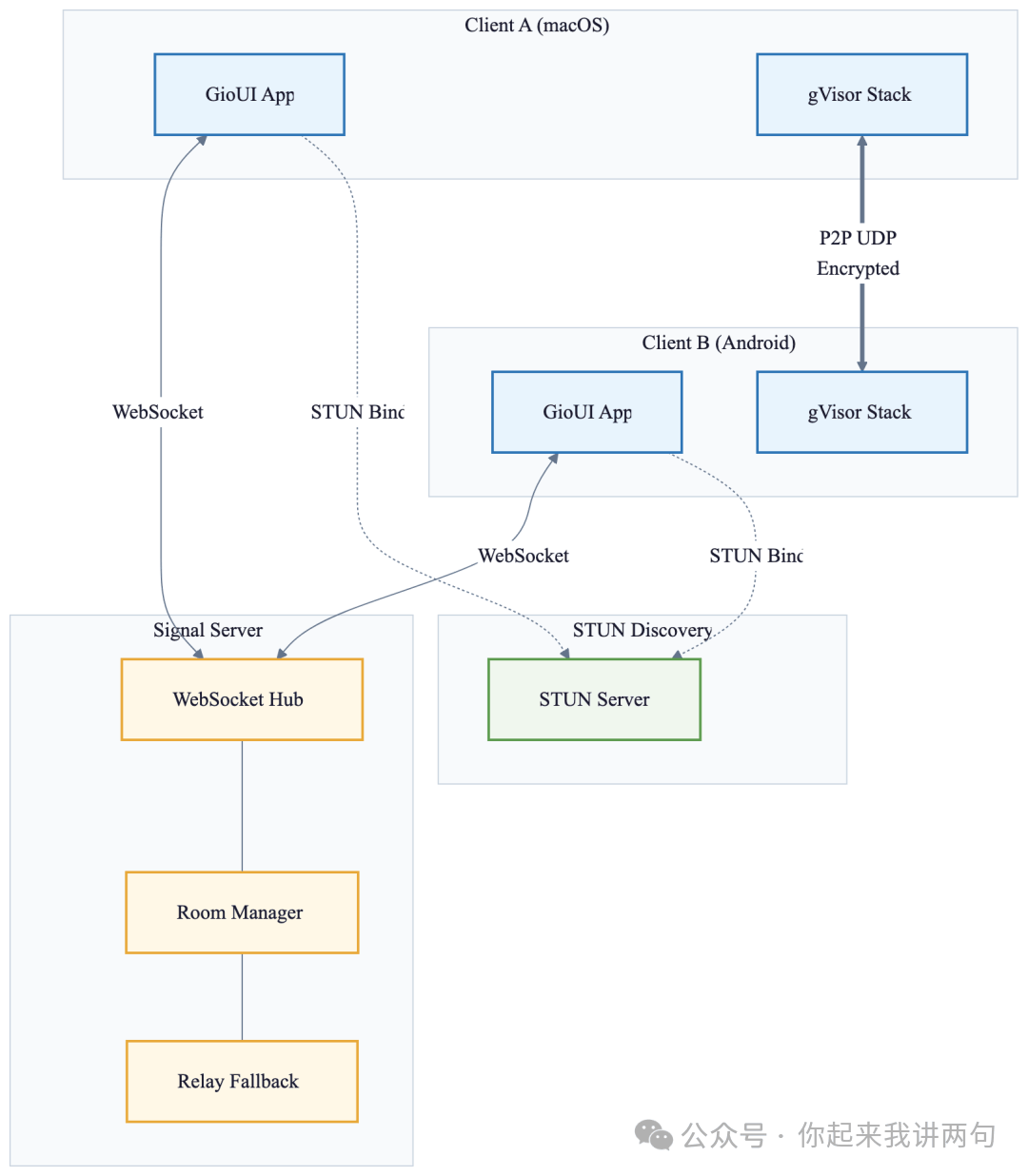 “我只是想把家里的 NAS 端口暴露出来,结果走上了一条从 STUN 打洞、X25519 加密、gVisor 协议栈到 GioUI 跨平台 GUI 的不归路。这篇文章记录了我如何用 16000 行 Go 代码,写出了一个真正能用的 P2P 隧道工具。”