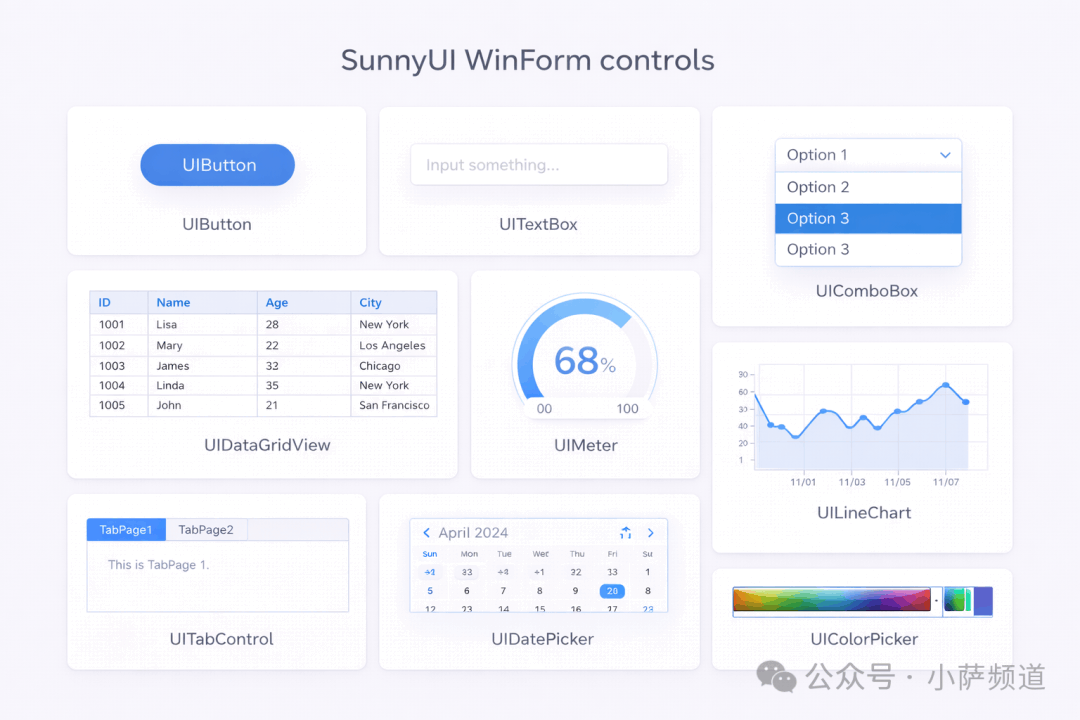 SunnyUI 把这些做成了原生控件:拿过来配参数就能用,不需要自己画图,不需要调 Win32 API。