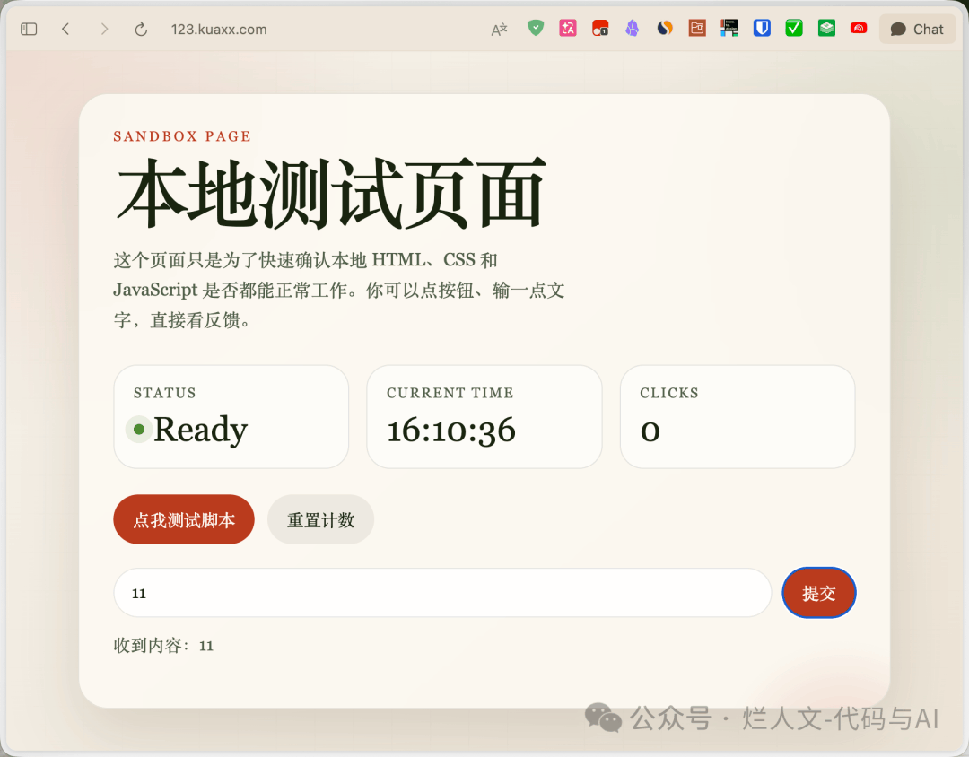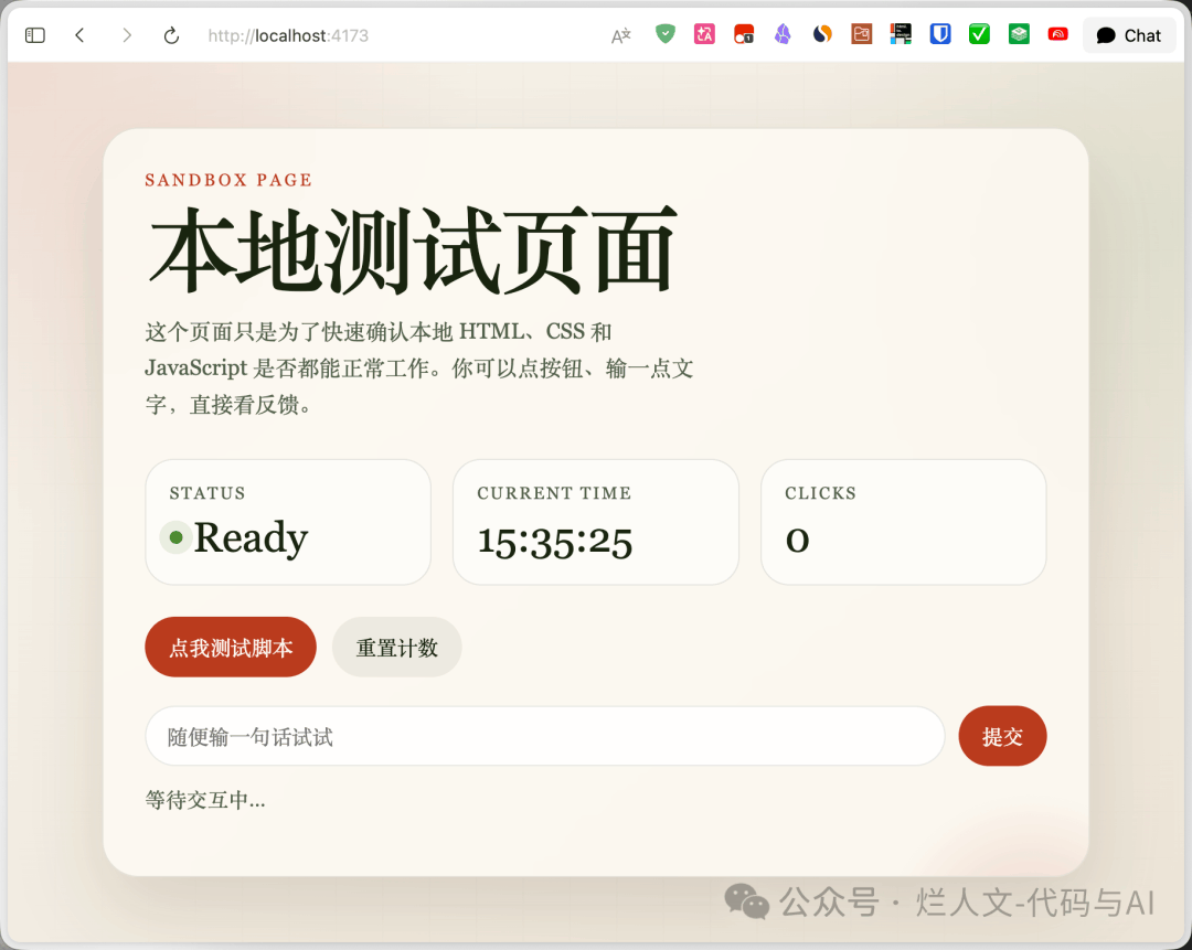 先确认本地服务已经跑起来。比如我这里的服务在 4173 端口。