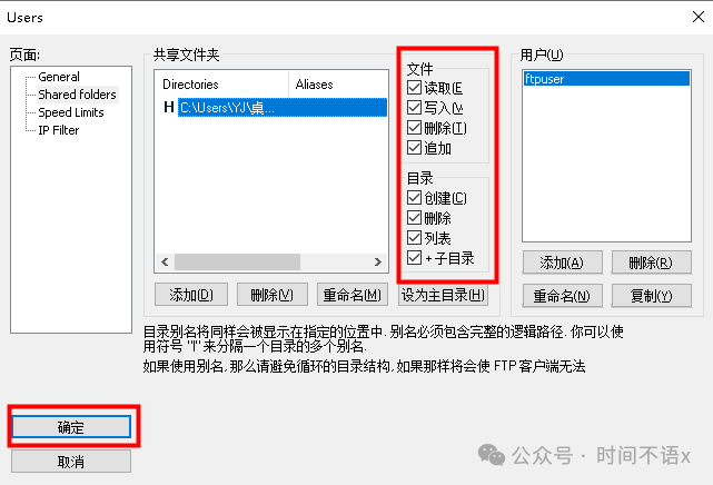 7. 点击确定,到此FTP服务器就搭建成功。