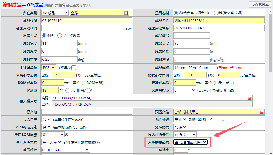 [点晴模切ERP]原材料采购入库为待品检状态,怎么关闭此功能,将物料自动作为合格品入库?