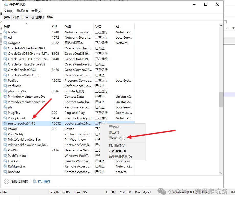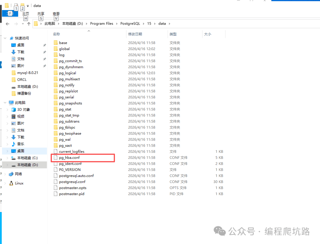 示例路径:D:\Program Files\PostgreSQL\15\data