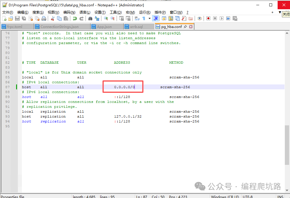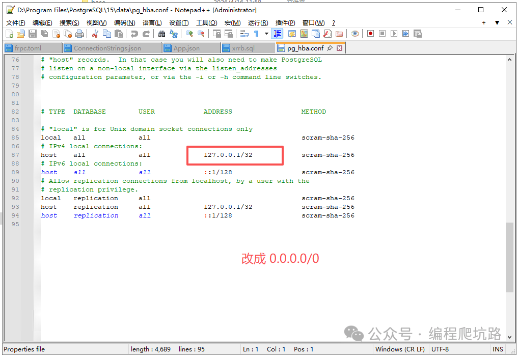 找到 data 目录下的 pg_hba.conf