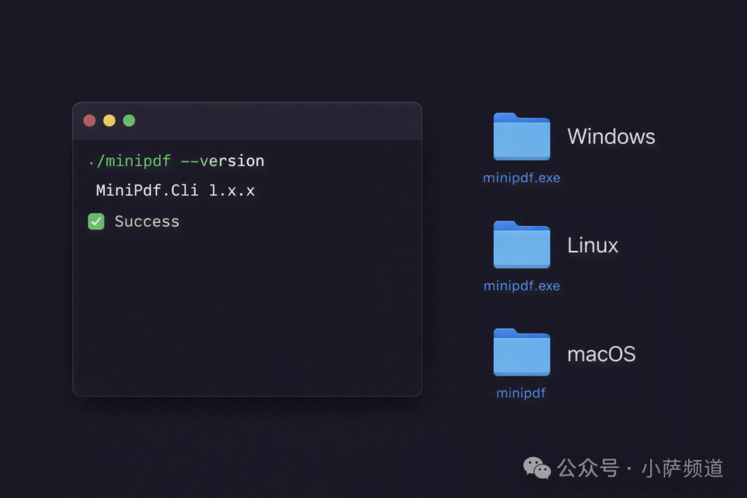 MiniPdf.Cli 支持 Native AOT 编译,直接生成各平台的原生可执行文件。