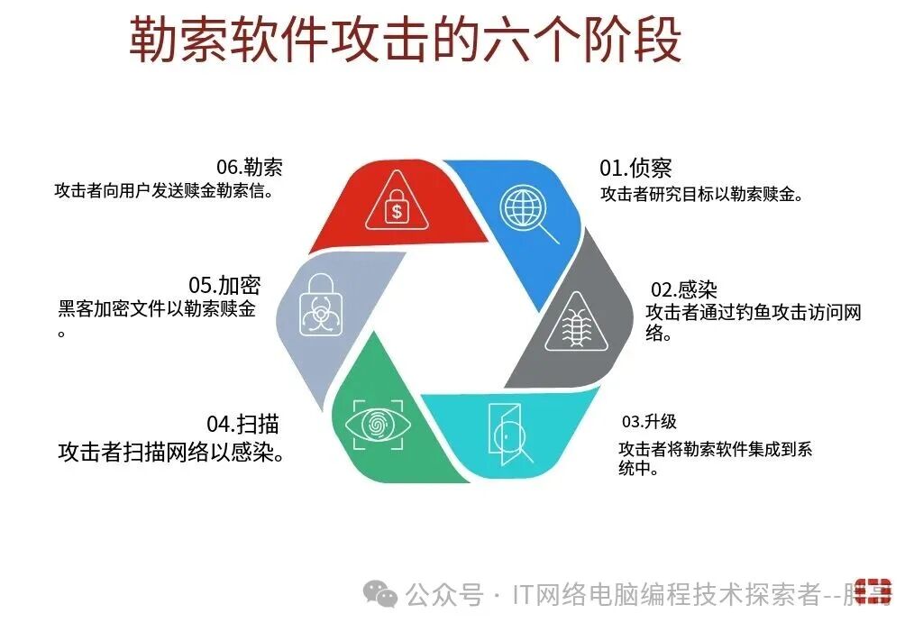 第4阶段:部署勒索程序,攻击者在确认控制整个网络后,会:批量下发勒索病毒->同时加密大量电脑->删除备份文件。