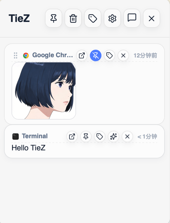 [点晴永久免费OA]TieZ:轻量级的跨平台剪贴板管理器,能实现文本、图片、富文本、文件路径等内容复制粘贴