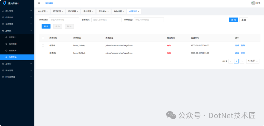 动态表单:表单创建和修改都是可视化的,不用写前端代码,拖拽配置就能快速搭建数据录入界面,尤其是那些表单频繁变更的场景,用它能节省大量前端开发时间。