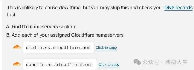 Cloudflare在新页面中,提供了两个nameserver: