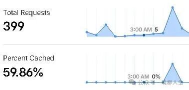 2. 在控制面板上可以查看最近24小时的CDN缓存。比如我自己的一个小测试站最近一段时间的缓存数据如下: