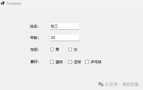 在上述示例中,学生信息GroupBox中的性别,用RadioButton进行表示,同时班级信息GroupBox中的放假,也用RadionButton进行表示,可以看出同一个GroupBox中的RadioButton是互斥的,如男/女,是/否只能有一个被选中;而分别处在两个GroupBox中的RadioButton则相互独立,互不干扰,如性别的选择,不会影响到放假的选择,这就是容器的另一个作用:程序化分组。
