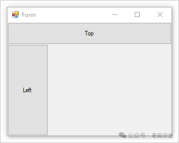 如果控件的 Z-order 倒置,停靠在左侧的控件将拥有更多的初始可用空间。 该控件使用容器的整个高度。 停靠在顶部的控件具有较少的水平空间。