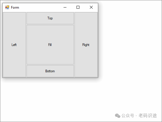 当控件停靠时,容器会确定其应占用的空间,调整控件的大小并进行定位。 基于停靠样式,仍采用控件的宽度和高度。 例如,如果将控件停靠在顶部,则采用控件的 Height,但自动调整 Width。 如果将控件停靠在左侧,则采用控件的 Width,但自动调整 Height。控件的Location无法手动设置,因为停靠控件会自动设置位置。