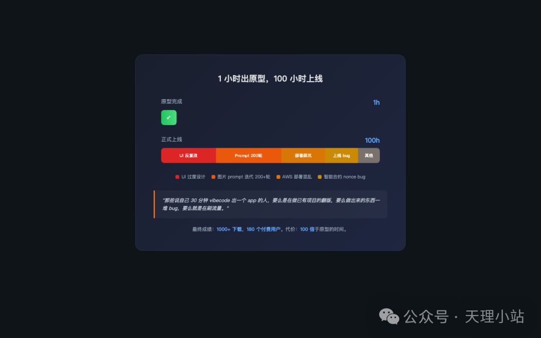 原型用了 1 小时。上线用了 100 小时。