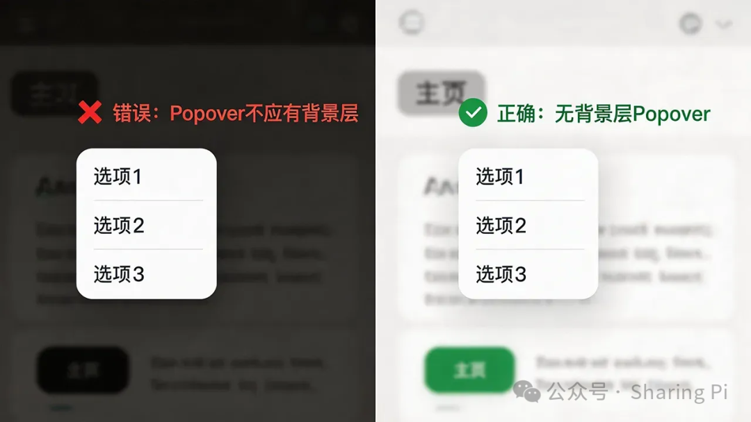 绝对不要为Popover添加 ::backdrop样式!背景层是模态对话框的专属视觉特征。给弹出层添加背景层会让用户困惑,以为这是一个模态对话框,但实际行为却是非模态的,造成认知失调。
