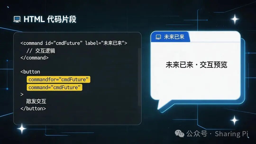 目前有一个已广泛实现的提案:Invoker Commands。它允许你通过HTML属性直接控制对话框的打开和关闭,就像Popover API一样简单: