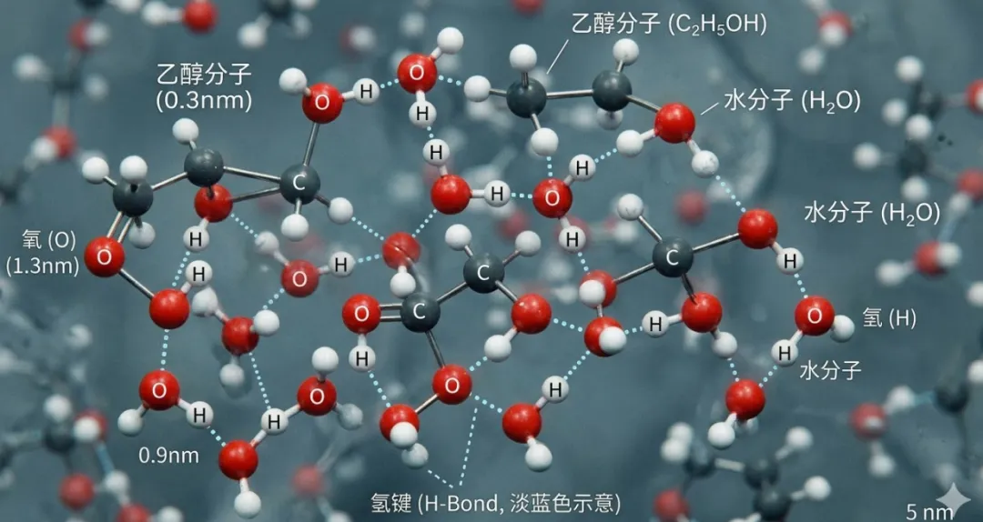 可以把它想象成两群人原本站得松松散散,后来混到一起,发现彼此之间有空隙,于是重新挤了挤,队形变紧了。水和乙醇混合之后,也会出现类似的“重新站队”。