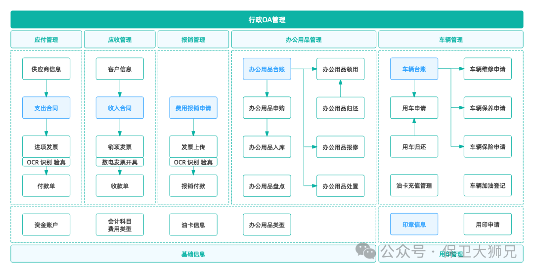 2 系统分工清晰,流程被拆进业务里 国外企业并不是不用系统,反而系统更细。 销售用CRM 财务用财务系统 项目用项目管理工具 沟通用协同工具 每个系统只解决一个问题。 流程不再是一个单独存在的审批模块,而是直接嵌在业务动作里。比如: 提交费用 → 自动进入财务流程 创建订单 → 自动触发审核规则 调整项目 → 自动记录变更 你不会去点一个OA入口,但流程一直在发生。 这也是为什么很多人会产生错觉:好像他们没有OA。实际上,是OA被拆散了,融进了业务系统里。 国内这几年也在往这个方向走,一些企业开始用把行政、审批和具体业务数据放在一起的工具,而不是单独维护一套流程系统。 这种方式的核心变化是:流程不再独立存在,而是围绕数据发生。