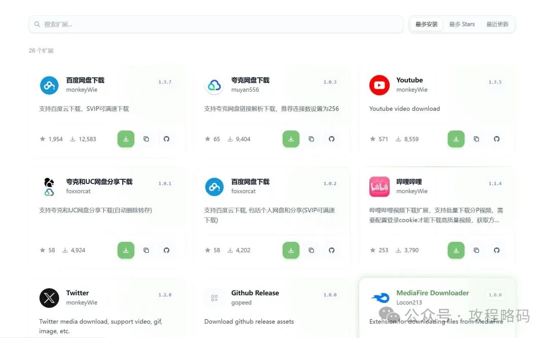 它还有一个强大的扩展能力,能使用 JavaScript 编写扩展,轻松扩展 Gopeed 的下载能力。估计也是借鉴了浏览器中的扩展功能的设计,通过安装插件的方式对浏览器进行功能增强。