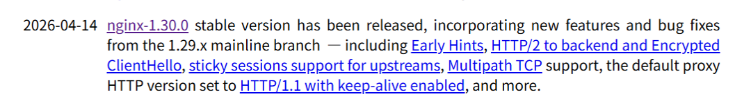 2026年4月14日,Nginx 1.30.0 正式发布。